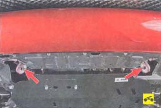 Для буксировки автомобиля также предусмотрены две стационарные проушины в передней части автомобиля...