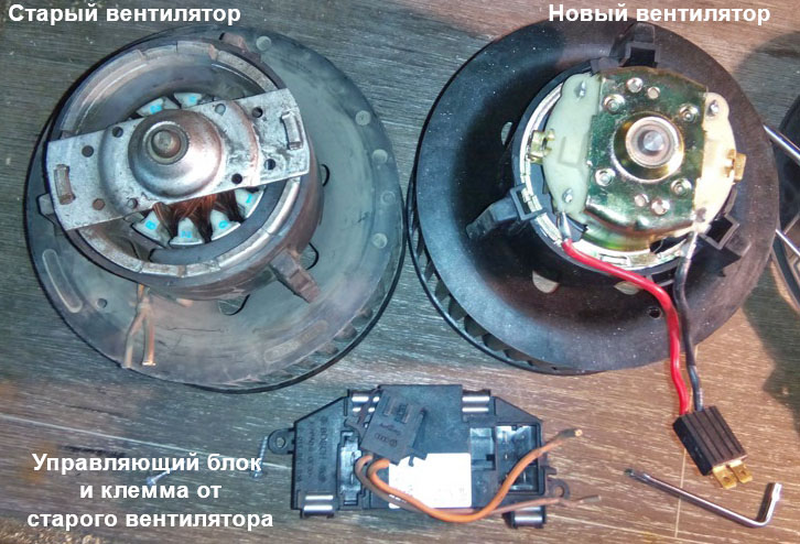 Вторая часть - модуль управления/регулятор скорости (VAG 3C0 907 521 F). Его поломка маловероятна, кроме каких-то крайних случаев перегорания. На свист и треск он не влияет. В случае поломки, можете его заменить отдельно от вентилятора на оригинальный либо аналог.