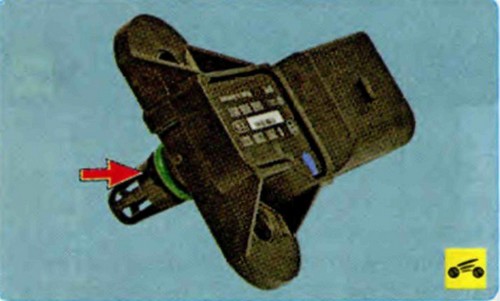 Датчик абсолютного давления и температуры во впускном коллекторе уплотнен резиновым кольцом. Не потеряйте его при снятии датчика. Если кольцо сильно обжато, затвердело или надорвано, замените его.