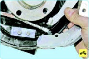 12. Извлеките оболочку троса из отверстия в щите тормоза.