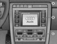 - B — Система навигации Audi plus/аудиосистема, например, Audi symphony