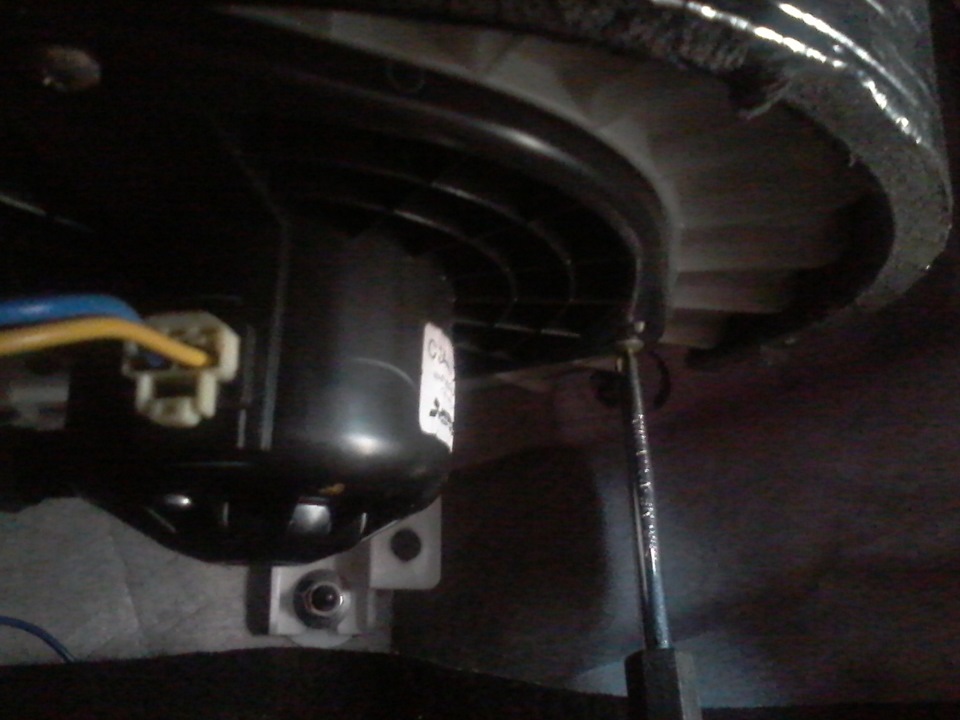 7. Наверное, самое сложное. Достаем мотор из кожуха путем зацепления отвертки за отверстия мотора и упираемся ногами в кожух