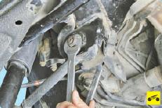 - 2. Удерживая болт крепления переднего поперечного рычага к подрамнику от проворачивания, ослабьте затяжку гайки болта.