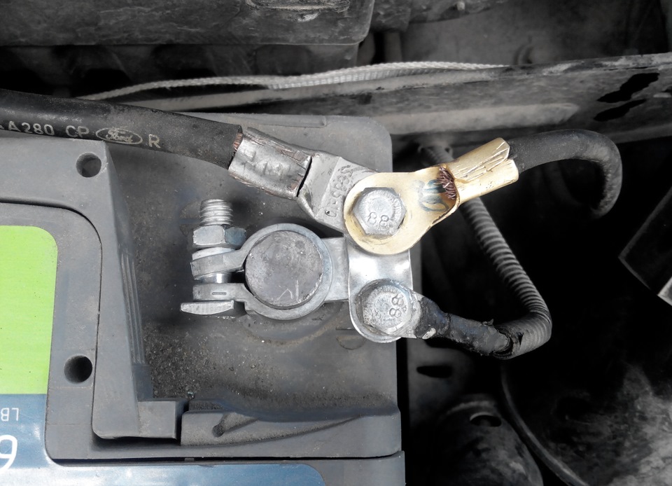 1. Отсоедините провод от клеммы «минус» аккумуляторной батареи.