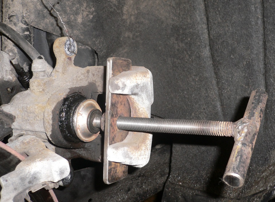6. Теперь необходимо вдавить поршень в тормозной цилиндр, для этого я использовал самодельную струбцину;