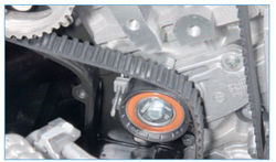 Устанавливаем новый натяжной ролик и затягиваем болт его крепления предписанным моментом.