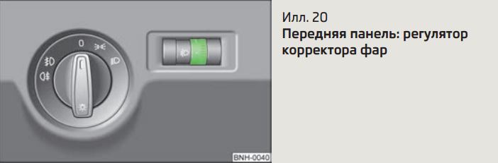 Поверните регулятор илл. 20 в положение требуемой дальности освеще­ния.