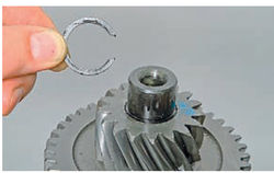 8. Снимаем стопорное кольцо ступицы муфты синхронизатора I-II передач.
