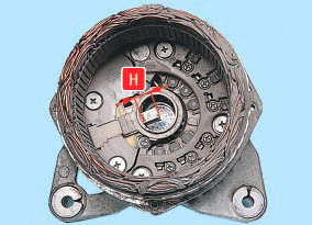 2. Пометьте любым способом (например, маркером) взаимное расположение статора и крышек генератора, чтобы при обратной сборке обеспечить соосность отверстий для крепления генератора в лапах крышек.