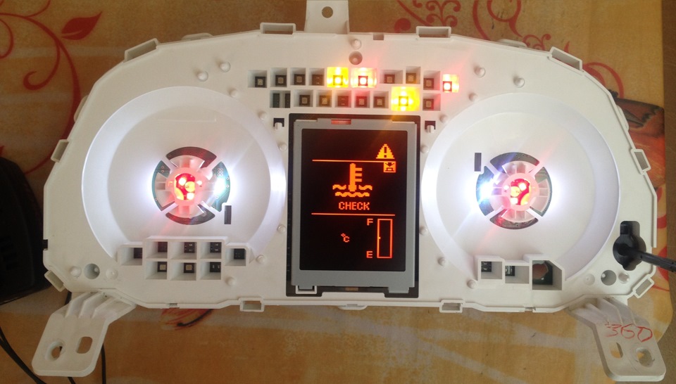 Ну и вот собственно результат, всё работает, показания верные. На фото издевательства с приборкой, новые шкалы пока не пришли, и пока думаю что делать с заменой цвета на экране.