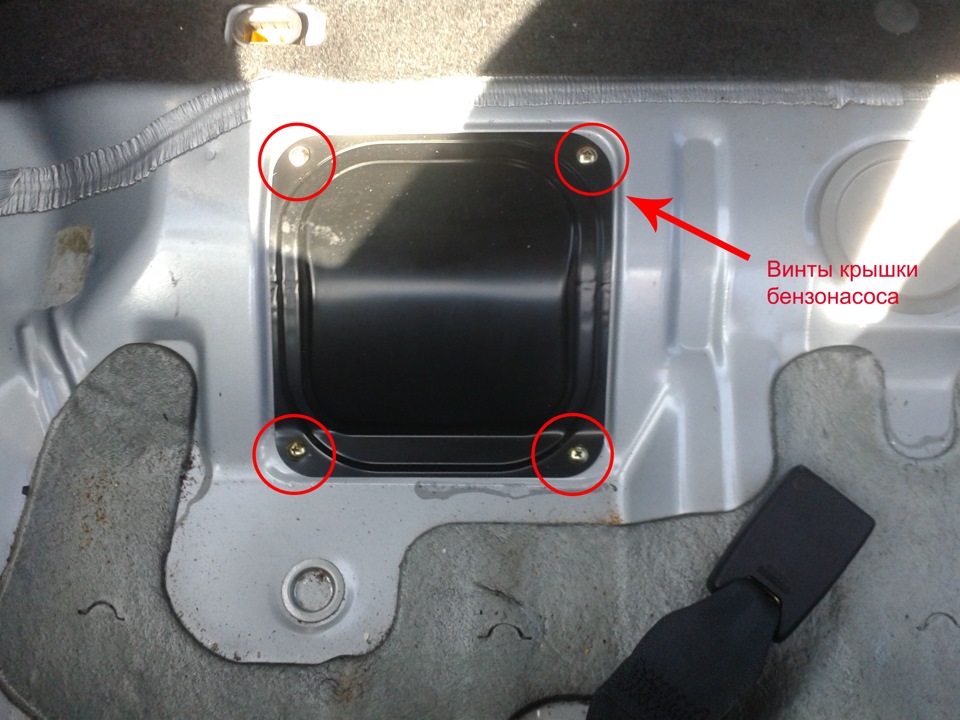 1.Отсоединяем и убираем нижнюю часть заднего сидения.Оно крепится на защёлках.Под сидением находится лючок бензобака.