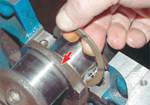 Вкладыши устанавливайте так, чтобы установочный усик вкладыша совместился с выемкой на постели.