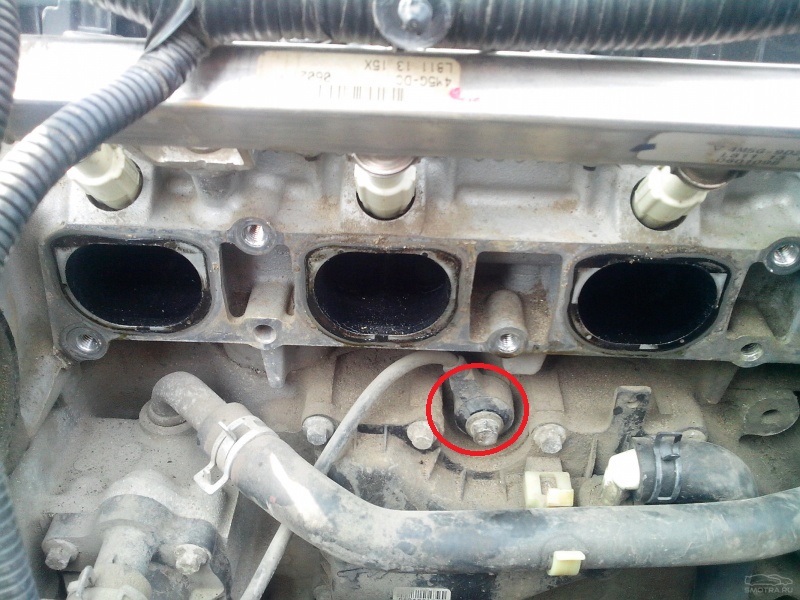 Перед установкой датчика очищаем поверхность блока цилиндров в месте установки датчика.