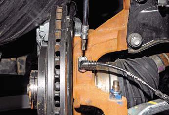 Датчик скорости вращения переднего колеса снимаем для его проверки или замены при обнаружении отказов в работе ABS, а также при демонтаже поворотного кулака.