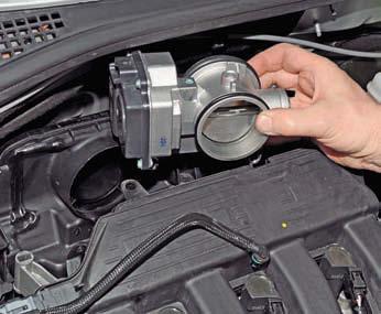 Преодолевая сопротивление резинового уплотнительного кольца, вынимаем патрубок дроссельного узла из отверстия ресивера и снимаем дроссельный узел.