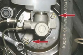 Если нет необходимости снимать бачок, снимайте главный тормозной цилиндр в сборе с бачком.