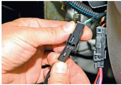 7. Нажав на фиксатор колодки, отсоединяем колодку контактной группы выключателя зажигания от колодки жгута проводов.