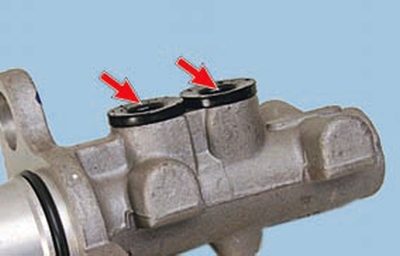 Последующие операции для наглядности показаны на снятом главном тормозном цилиндре.