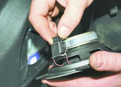 9. ...и отсоедините колодку жгута проводов от разъема динамика опоры задней полки.