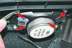 10. Отверните четыре гайки крепления динамика к опоре полки багажника...