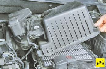 - 1. Отстегните фиксаторы крышки корпуса воздушного фильтра…