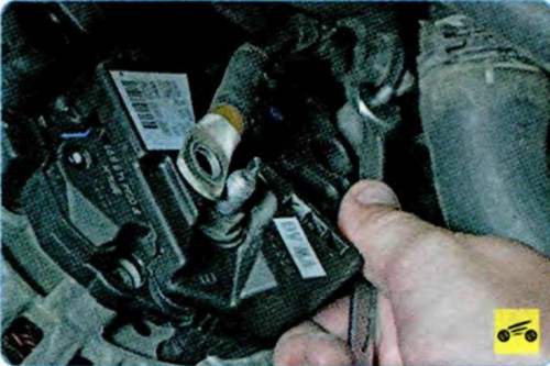 1. Отсоедините провод от клеммы «минус» аккумуляторной батареи.