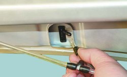 2. Снимите держатель трубки омывателя стекла ветрового окна с левой кромки капота.