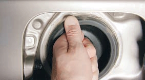 14. Откройте крышку люка наливной трубы топливного бака и, придерживая в арке заднего колеса наливную трубу, выдавите ее внутрь кузова.