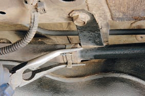 12. Выверните один болт крепления кронштейна наливной трубы к кузову.