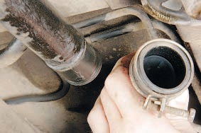 10. Ослабьте хомут крепления шланга наливной трубы.