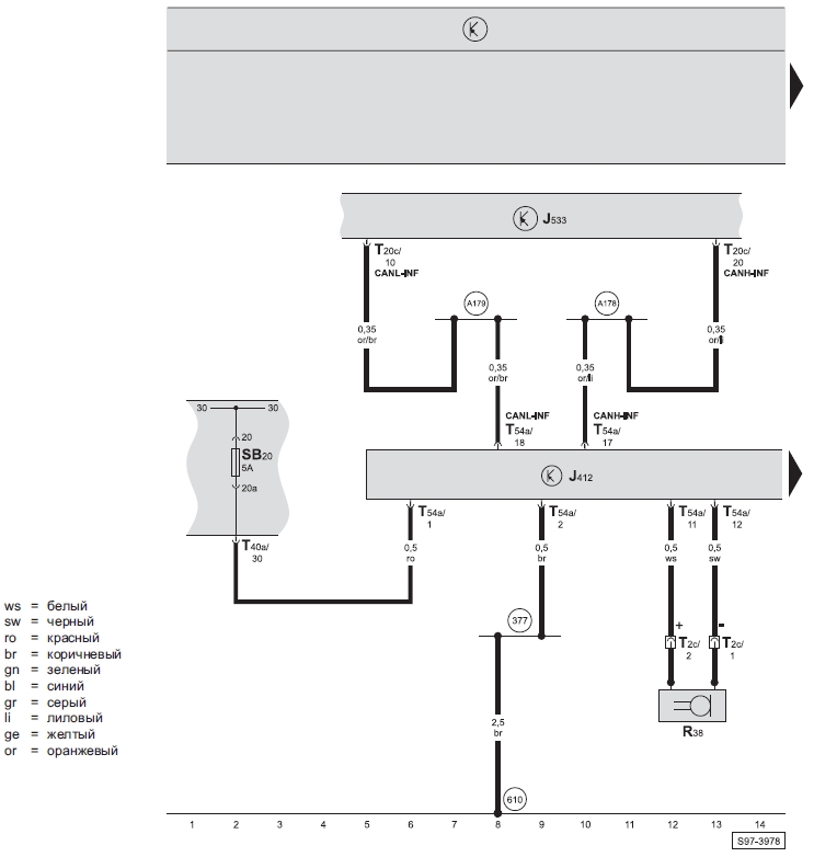 11. Сожмите фиксатор и отсоедините колодку жгута проводов высокочастотного динамика.