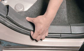 При снятии облицовки пружинные фиксаторы часто остаются в проемах кузова. Извлеките их из проемов кузова пассатижами и установите на кронштейны облицовки.