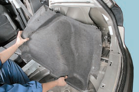 11. …и, преодолевая сопротивление пружинных фиксаторов, снимите заднюю облицовку багажного отделения.