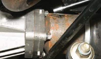 4. Отсоединяем от редуктора переднего моста карданный вал, как описано здесь.