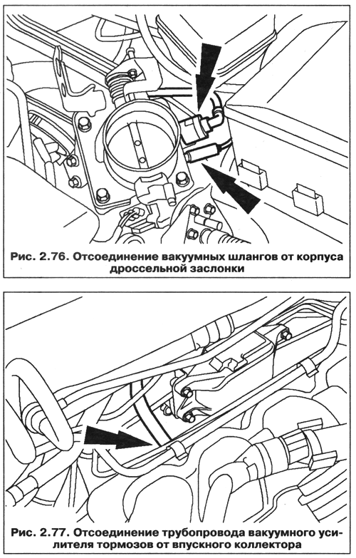 7. Отсоедините вакуумные шланги от корпуса дроссельной заслонки.
