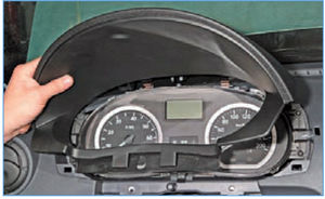Работу проводим при замене комбинации приборов, а также при снятии панели приборов и рулевой колонки.