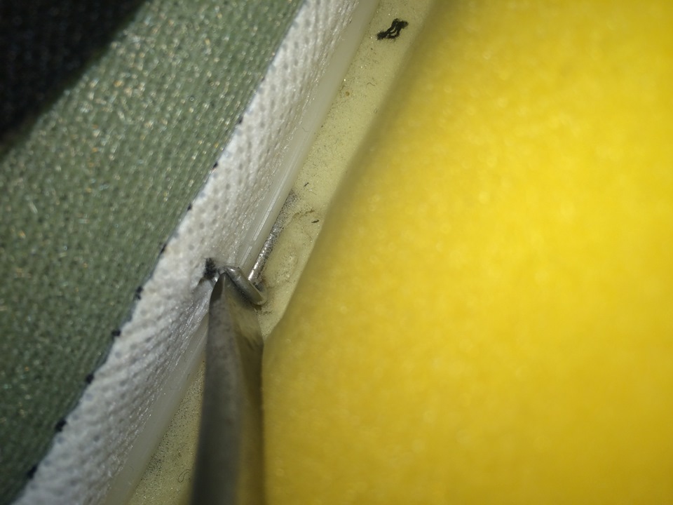 4. Для того чтобы собрать чехлы кресла обратно, продевайте эти колечки на планки и зажимайте их при помощи плоскогубцев.