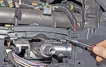 Отворачиваем два самореза крепления блока управления отоплением, вентиляцией и кондиционированием и проталкиваем блок внутрь панели приборов (см. Снятие блока управления отоплением, вентиляцией и кондиционированием).