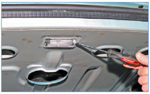 6. Воспользовавшись тонкой отверткой, извлекаем сальник из гнезда в головке блока цилиндров.