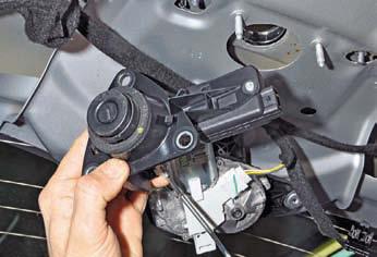 Отжав фиксатор колодки жгута проводов, отсоединяем ее от электропривода…