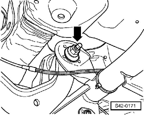 — Подвесить провод датчика частоты вращения в хомут на верхнем поперечном рычаге.