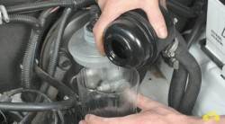 6. Снимите шланги с патрубков бачка и снимите бачок ГУР Шевроле Нива.