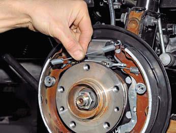 Устанавливаем новые колодки тормозного механизма заднего колеса в обратной последовательности.