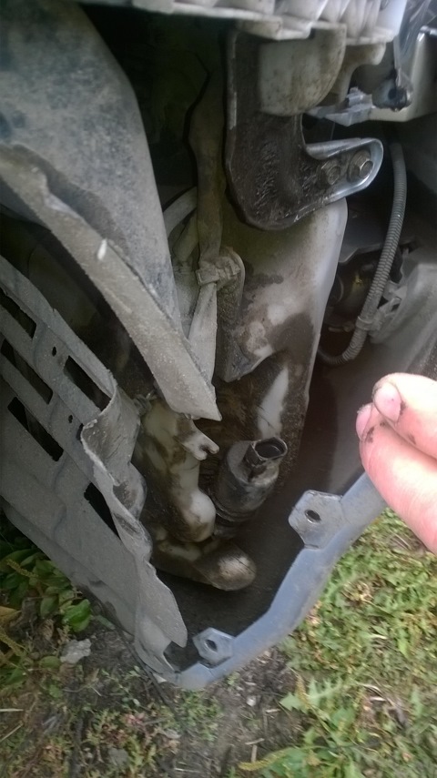 Визуально осматривая машину нигде течи воды я не увидел, но заметил другое … оставляя машину на длительное время стал замечать мокрое пятно под бачком омывателя.