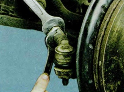 10. Отверните наконечник от рулевой тяги, подсчитывая количество оборотов, чтобы при установке нового наконечника по возможности не изменить схождение колес.