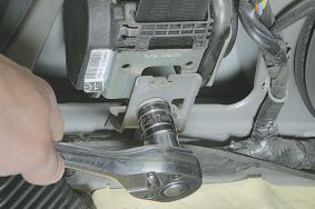 15. Выверните болт крепления инерционной катушки к кронштейну центральной стойки…