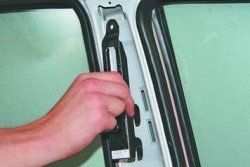 13. Для снятия замка переднего ремня безопасности выверните болт крепления замка с левой задней стороны водительского сиденья и снимите замок.