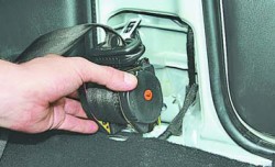 - После отсоединения провода от клеммы «минус» аккумуляторной батареи необходимо подождать не менее 10 мин и только после этого можно приступить к снятию ремня безопасности, оснащенного преднатяжителем.