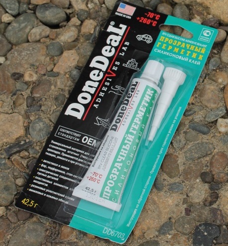 Покупайте черный или бесцветный герметик, потому что, например, синий будет очень видно после установки стекла.