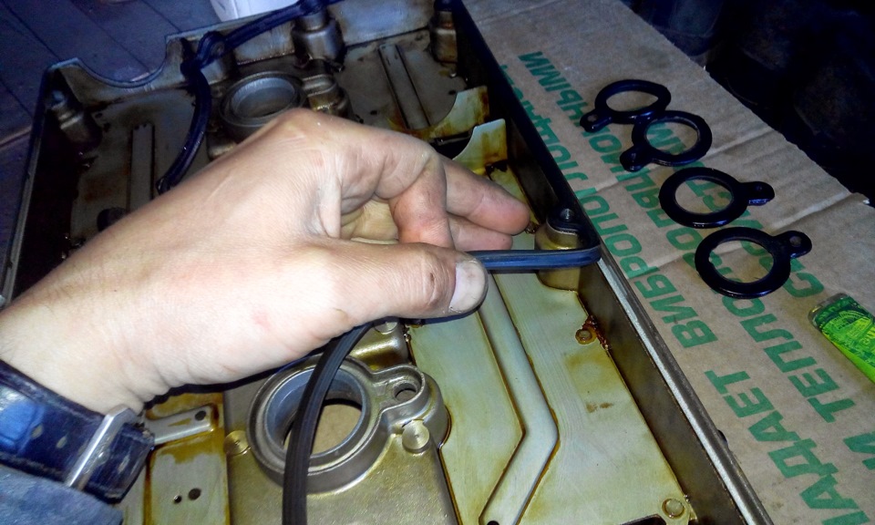 На клапанной крышке под прокладкой есть герметик, его нужно убрать и нанести новый…